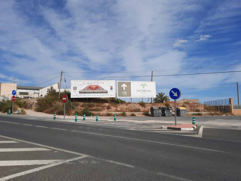 - la ubicación de una Valla Promocional en un lugar estratégico a la entrada del municipio por la nacional 340 con el lema “CREVILLENT, CIUDAD DE LA ALFOMBRA” generando una importante notoriedad para miles de personas que cada día recorren éste trayecto e identificando a CREVILLENTE como la cuna de la alfombra española.